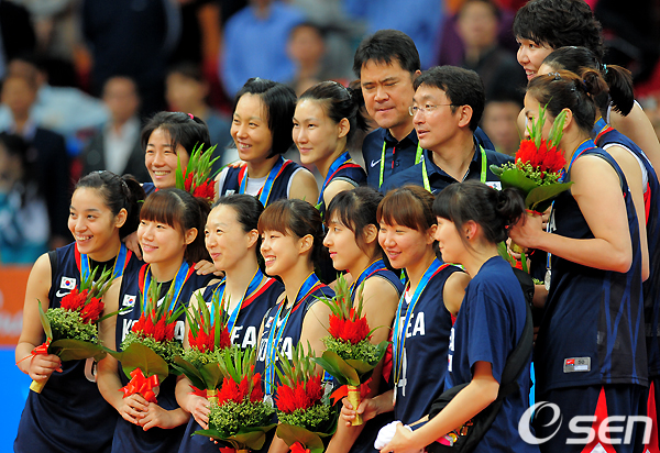 16년만에 금메달을 노리던 한국 여자 농구가 중국의 만리장성에 막히며 은메달에 그쳤다.
