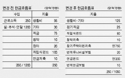 장기재무목표의 경우 목표자금이 1000만원이 아닌 1억원 이상이므로 가급적 인플레이션을 헤지할 수 있고 비과세 혜택을 받을 수 있는 금융상품을 선택하는 것이 좋습니다. 현재 가입되어 있는 연금저축을 연금펀드로 변경하여 운용하면 불입액100%에 대한 소득공제효과를 유지하면서도 자유납입이 가능하기 때문에 상여금을 활용하여 투자가 가능하고 기대수익률을 높일 수 있습니다. 또한 적립되던 10만원을 변액연금상품으로 변경 운용하여 안전성을 확보하면서도 세금·인플레이션을 헤지하길 바랍니다.