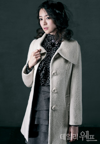 크림 컬러의 예쎄 아우터를 이용하여 성숙함 모습을 선보이며 청순하고 사랑스런 모습을 연출한다. 부드럽고 여성스러운 느낌이 강한 크림 컬러에 부드럽고 섬세한 울 소재로 보온성은 물론, 와이드 카라로 넓은 어깨를 슬림해 보이는 효과까지 줄 수 있어 여성스러움을 부각 시킬 수 있는 아이템이다.