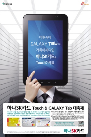 하나SK카드는 올해 말까지 Touch 카드를 발급 받고 갤럭시 탭을 구입하면 단말기 대금의 일부를 지원하는 갤럭시 탭 구입 지원금 프로모션을 진행한다.