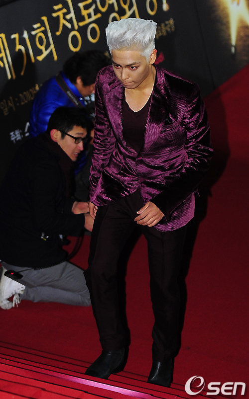 청룡영화상 신인남우상 후보에 오른 그룹 빅뱅 출신의 연기자 탑(본명 최승현)이 백발헤어로 레드카펫을 밟아 이목을 집중시켰다.