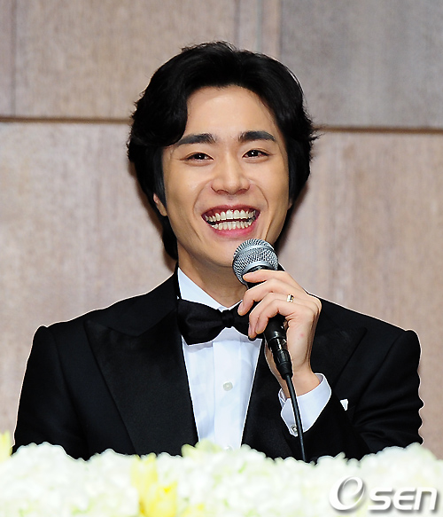 조성모가 기자회견중 환하게 웃고 있다./rumi@osen.co.kr