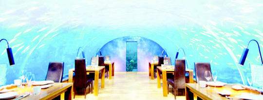 다양한 레스토랑 역시 격이 다른 즐거움을 제공한다. 그중에서도 ‘이타(Ithaa) 레스토랑’은 세계 최초로 해수면 5m 아래에 지어진 수중 레스토랑으로 어떤 것과도 비교할 수 있는 독특한 경험을 선사한다.