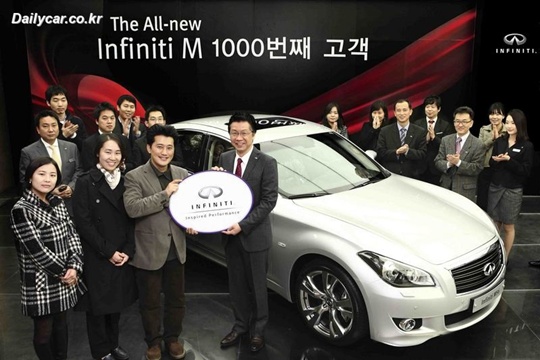 인피니티는 27일 강남 전시장인 SS모터스에서 올 뉴 인피니티M 1,000번째 주인공인 심상범씨에 차량 전달식을 가졌다.