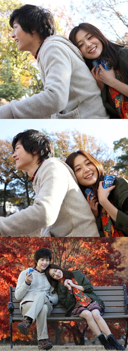 최근 커피브랜드 레쓰비는 백진희와 송중기를 모델로 낙점했다. 이에 두 사람은 올림픽공원에서 자전거 데이트를 하는 다정한 연인 컨셉트로 광고를 촬영했다.