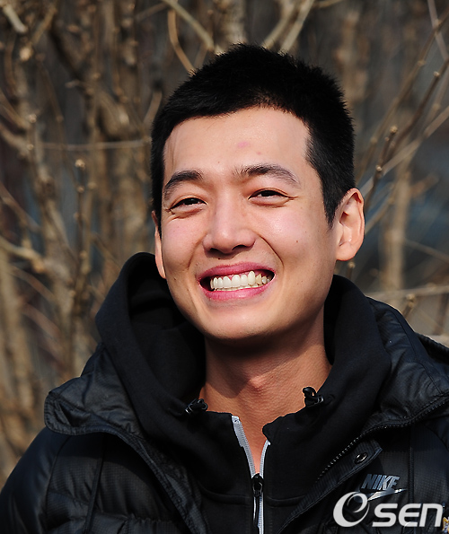 정경호가 부대 앞 인터뷰중 환하게 미소짓고 있다. /rumi@osen.co.kr