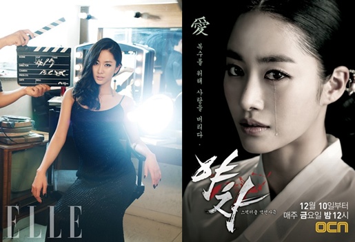 오는 10일 첫방송 예정인 OCN 액션 사극 '야차'에서는 한복에 쪽진 머리로 등장해 가녀린 느낌을 표현한다면 이번에 공개한 화보 중 첫번째 사진에서는 깨끗한 피부에 붉은 입술을 강조하고, 자연스럽게 늘어뜨린 머리 스타일과 눈빛으로 섹시미와 청순함을 아우르는 묘한 느낌을 물씬 풍겼다.