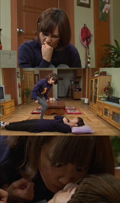 할머니 영옥과 장난치는 옥엽(조권)을 얄밉게 생각하던 승아가 누워있는 옥엽의 머리를 때리려다가 넘어지면서 입맞추게 된 것.