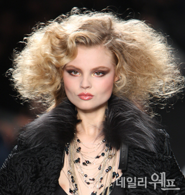 굵은 웨이브를 준 다음 전체적으로 에센스를 이용하여 자연스럽고 윤기나게 표현한다. 모발에 제품을 잘 발라주어 부스스한 느낌이 나지 않게 한다.