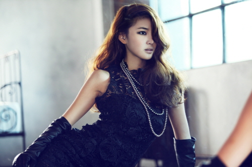 특히, 굵은 웨이브 헤어스타일에 블랙드레스를 입고 차가운 눈빛으로 한곳을 응시하는 모습이 강렬하다.