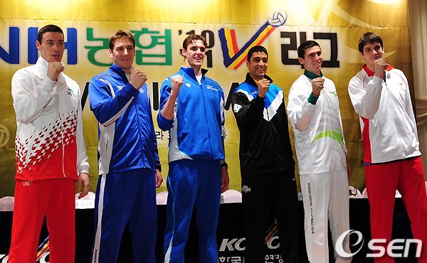 LIG손해보험 페피치, 대한항공 에반, 삼성화재 가빈, 현대캐피탈 소토, 우리캐피탈 숀 파이, KEPCO45 밀로스가 포토타임을 갖고 있다. /jpnews@osen.co.kr