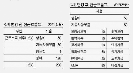 Q : 사회초년생으로 제대로 된 재테크를 하고 싶습니다. 현재 세후 월 230만원 정도를 받고 있습니다. 현재 가입한 상품은 부모님께서 제 이름으로 가입한 암보험이 있습니다. 납입한지 1년 정도 됐구요. 다른 상품은 아직 가입한 게 없습니다. 현재 용돈으로 50만원(휴대폰·생활비)을 쓰고 있으며 자동차 할부금으로 50만원(부모님께 드리는 거라 유동성이 있음)씩 지출하고 있습니다. 청약저축으로 월 10만원과 실비보험(운전자포함)으로 월10만원씩 불입하고 있습니다. 나머지를 이용해 적금이나 펀드에 투자하고 싶습니다. <28세 직장인 K씨>