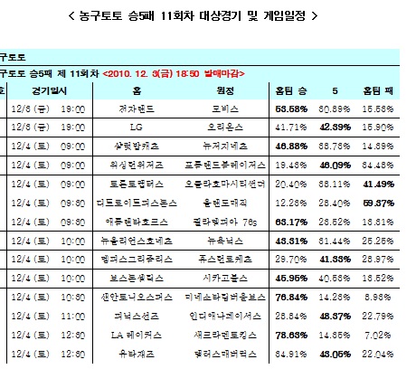 농구토토 승5패 11회차 게임은 1경기 전자랜드-모비스전 시작 10분전인 오는 3일(금) 오후 6시 50분에 발매가 마감된다.