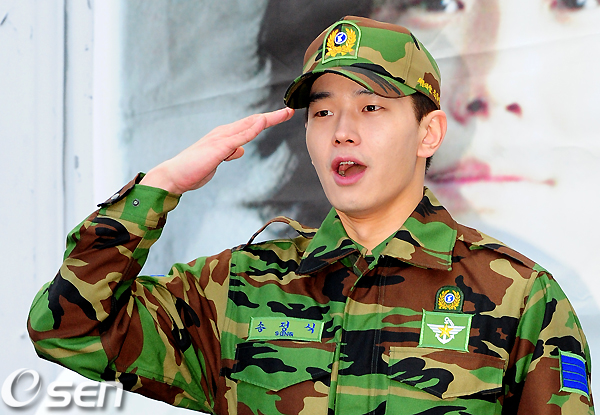 온주완이 취재진을 향해 전역 신고를 하고 있다. /jpnews@osen.co.kr