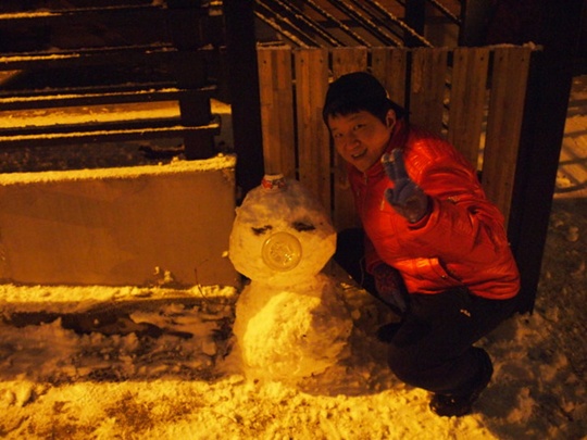 [OSEN=방송연예팀] 개그맨 정형돈의 아내이자 방송작가인 한유라가 눈사람을 만들며 행복한 한 때를 보냈다.