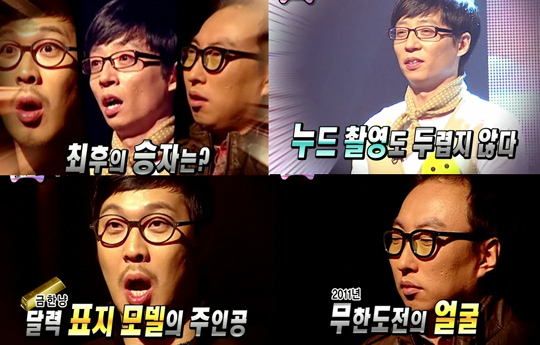 박명수와 유재석을 제외한 다른 멤버들은 누드를 촬영하며 충격적인(?) 비주얼을 자랑했다. 유재석도 끝내 이 누드 촬영에 합류해 눈길을 모았다.
