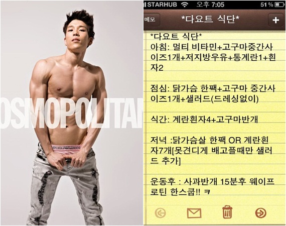 그룹 2AM의 창민이 다이어트에 돌입하며 자신의 식단을 공개했다.