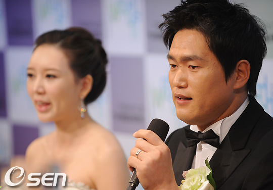 예식에 앞서 열린 기자회견에 참석한 최희섭이 소감을 말하고 있다. /soul1014@osen.co.kr