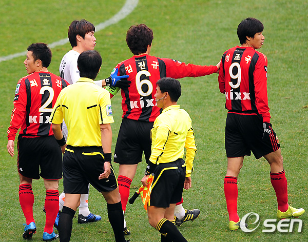 전반 양팀 선수들이 험악한 분위기를 연출하고 있다. /spjj@osen.co.kr