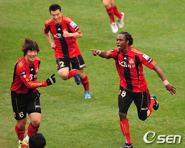 후반 역전골을 넣은 아디가 환호하고 있다. /spjj@osen.co.kr