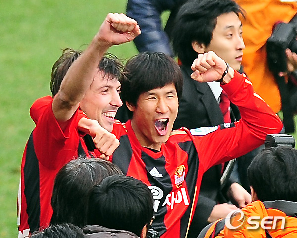 정조국이 데얀과 승리의 환호는 하고 있다. /spjj@osen.co.kr