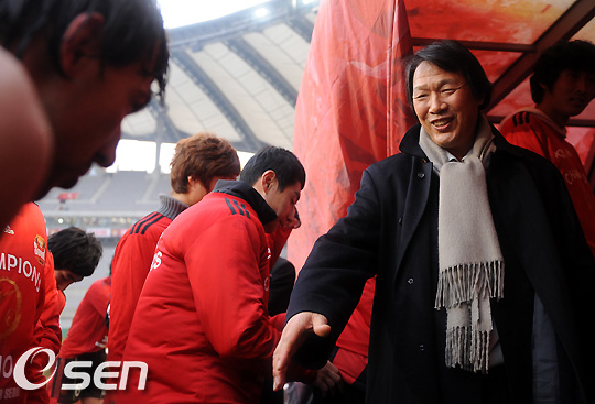 경기 종료 조광래 대표팀 감독이 서울 선수들을 격려하고 있다./ soul1014@osen.co.kr