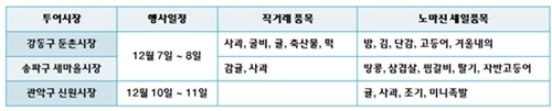 ▲7~8일 강동구 둔촌역시장/송파구 새마을 시장, 10~11일 관악구 신원시장 진행