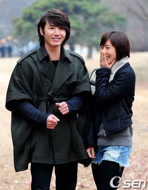 윤상현 하지원이 취재진의 포즈 요청에 쑥스러워하고 있다. /jpnews@osen.co.kr