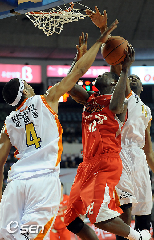4쿼터 SK 레더가 전자랜드 문태종과 허버트힐의 수비를 피해 골밑슛을 시도하고 있다./soul1014@osen.co.kr