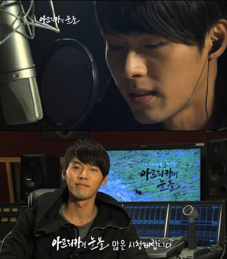 한학수 PD는 8일 자신의 미투데이에 ‘현빈씨와 더빙 했던 날. 열심히 하는 모습이 참 멋졌어요’라며 '아프리카의 눈물' 메이킹 첫 번째 영상으로 감동과 웃음의 현빈 내레이션 현장을 올렸다.