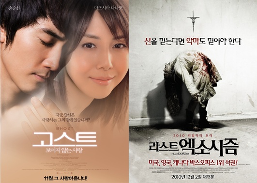 먼저 지난달 25일 개봉한 ‘고스트: 보이지 않는 사랑’은 죽어서도 사랑하는 사람을 지켜주고 싶은 나나미(마츠시마 나나코)와 이미 세상을 떠난 그녀를 잊지 못하는 도예가 준호(송승헌)의 가슴 아픈 사랑을 담은 작품이다.