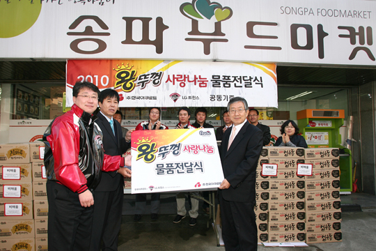 푸드마켓은 식품 및 생필품을 기부 받아 어려운 이웃과 나누는 상설 무료 마켓이다. 이번 기부는 2010시즌 동안 LG트윈스가 ㈜한국야쿠르트와 함께 진행한 ‘왕뚜껑 홈런존’ 이벤트를 통해 적립된 적립금 천만원으로 이뤄졌다. LG트윈스의 왕뚜껑 홈런은 총 10개로 이진영, 이택근, 오지환이 각각 2개를 박용택, 손인호, 이대형, 이병규(24)가 각각1개를 기록했다.