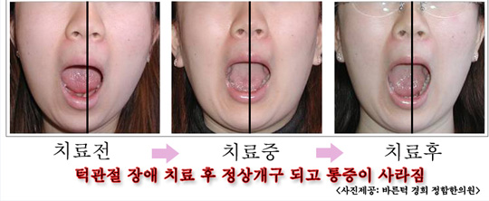 치료 후에는 턱의 통증과 관절 잡음이 없어지며, 개구범위가 정상으로 회복되고 이와 함게 얼굴도 작아지고 체형이 바르게 되어 허리가 가늘어 지며 등이 펴지는 효과를 볼 수 있다.