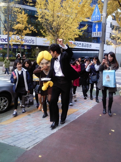 경기도 분당의 거리에서 진행된 이번 촬영 현장에는 많은 사람들 틈에서 여배우를 보호하려는 노홍철의 배려 아닌 배려로 노홍철이 쓰고 있던 탈을 쓰게 되었으며 탈이 너무 커서 얼굴이 돌아가는 바람에 노홍철 탈의 코를 잡고 걸어 보는 이들을 폭소케 했다는 후문.