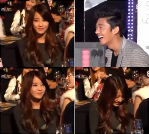 아이유는 이날 유아인과 극적으로 만났다. 유아인이 시상자로 무대에 선 것. 함께 나선 배우 박민영이 "얼마 전 재미있는 기사를 봤다. 아이유 씨가 유아인씨를 이상형으로 꼽았더라"고 말했다 이에 화면에 비친 아이유는 발그레 해진 얼굴로 부끄러움에 고개를 푹 숙이고 말았다.