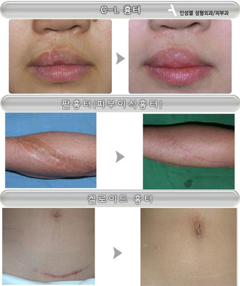 성형외과/피부과 안성열 원장은 “흉터는 심하면 주변의 피부와 색과 질감이 다르고, 주변 피부조직보다 부풀어 오르거나 패인 흉터로 남는 경우가 있다.”며 “하지만 의료기술의 발달로 이러한 흉터들도 레이저로 치료가 가능하게 되었다. 한번 생긴 흉터는 100% 원 상태로 되돌릴 수는 없지만, 항상 신경 쓰이던 흉터가 감쪽같이 없어지거나 희미해질 수 있게 된 것이다.”고 흉터치료에 대한 자신감을 피력했다.
