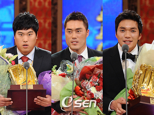 2010 CJ 마구마구 프로야구 골든글러브 시상식의 핵심 키워드는 첫 수상이었다. 조인성(LG·포수) 최준석(두산·1루수) 강정호(넥센·유격수) 김강민(SK·외야수) 등 4명의 선수들이 생애 첫 황금장갑의 영예를 안았다. 첫 수상이라는 점에서 의미가 남다르다. 하지만 그에 못지 않게 잃어버린 황금장갑을 되찾은 것도 의미있는 일이다. 류현진(한화·투수) 조성환(롯데·2루수) 이종욱(두산·외야수)이 그 주인공들이다.