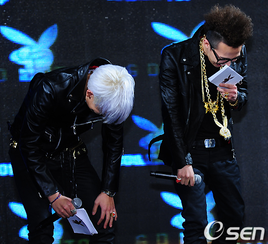 빅뱅의 지드래곤(G-드래곤)과 탑(TOP)이 음반 발매에 앞서 14일 영등포 타임스퀘어에서 ‘월드 프리미어’를 개최, 정규앨범 수록곡들을 최초 공개하는 시간을 가졌다.