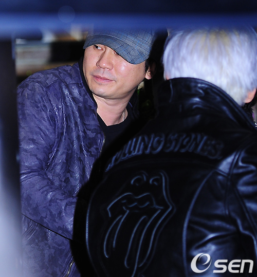 이 자리를 찾은 YG엔터테인먼트 양현석 대표가 지드래곤-탑을 찾아 얘기를 나누고 있다./rumi@osen.co.kr