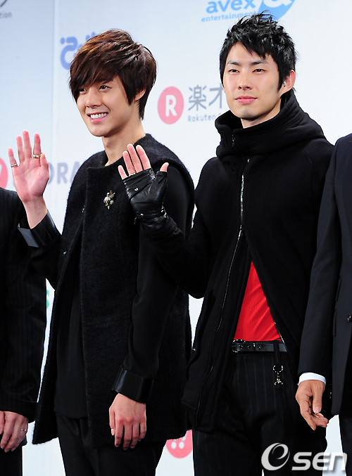 김현중, 바네스가 14일 오후 일본 도쿄 JCB홀에서 열린 DATV 자선기획 '미소 프로젝트' 1탄 '메시지 투 아시아(Message to Asia)' 공식 포토세션 행사에 참석해 포즈를 취하고 있다.