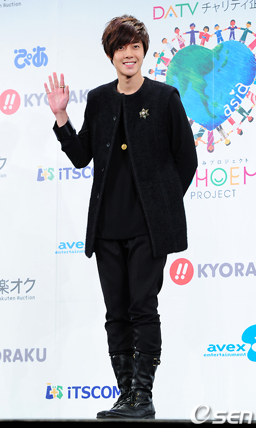 김현중이 14일 오후 일본 도쿄 JCB홀에서 열린 DATV 자선기획 '미소 프로젝트' 1탄 '메시지 투 아시아(Message to Asia)' 공식 포토세션 행사에 참석해 포즈를 취하고 있다.