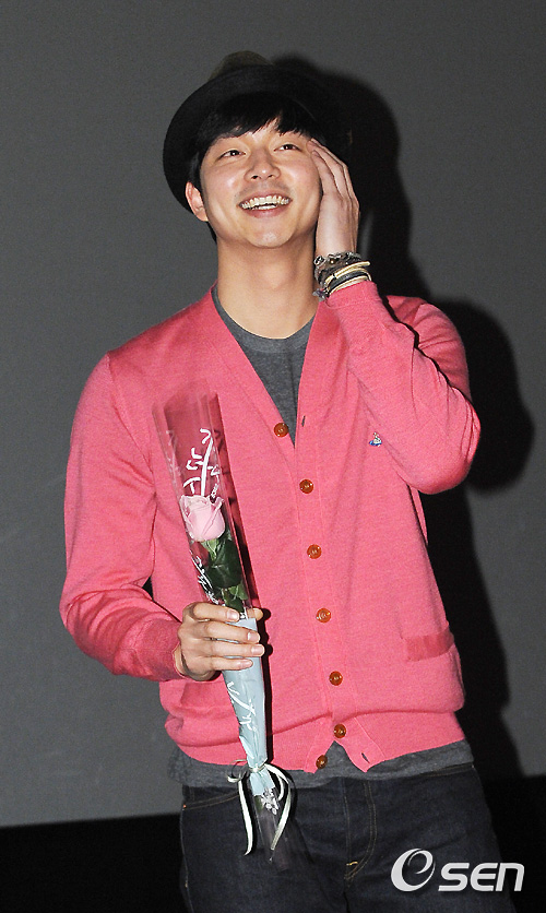 공유가 팬과 프리허그를 한 뒤 어색한 미소를 짓고 있다. /soul1014@osen.co.kr
