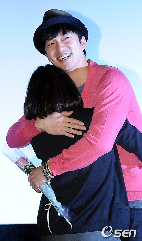 배우 공유가 12월 14일 '허그데이'(hug day)를 맞아 14일 오후 서울 용산 CGV에서 관객들과 직접 포옹을 나눴다.
