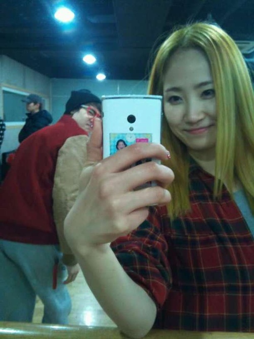 휴대폰 카메라로 연습실 거울에 비친 모습을 촬영한 것으로 보이는 이 사진 속 예은은 어깨 밑으로 내려오는 금발의 생머리를 자랑했고, 뒤에는 2PM의 멤버 닉쿤이 함께 등장해 더욱 눈길을 끌었다.