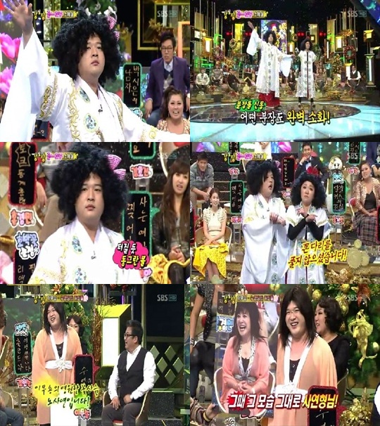 이날 KBS 2TV ‘개그콘서트’에서 출산드라로 최고의 인기를 모았던 개그우먼 김현숙이 출연했고, 신동은 ‘돼지드라’로 변신했다.