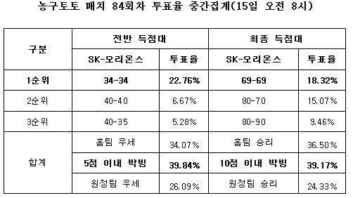 2010-2011시즌 농구토토 매치 84회차 투표율 중간집계 결과