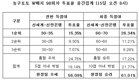 2010-2011 시즌 농구토토 W매치 98회차 투표율 중간집계 결과