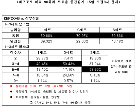 2010-11시즌 프로배구 대상 배구토토 매치 90회차 중간집계 결과