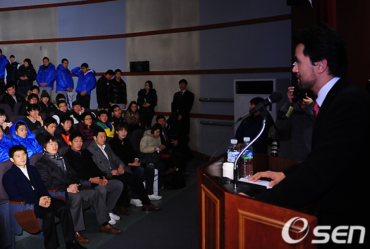"반갑습니다"라는 말로 인사를 한 박찬호는 "특강이라고 해서 찾아왔는데 강의를 한다는데 부담스럽기도 하고, 어떤 이야기가 여러분들에게 도움이 되고 좋은 정보가 될 지 모르겠지만 그 동안 느끼고 경험했던 점들을 이야기하고 싶다"며 강의를 시작했다.