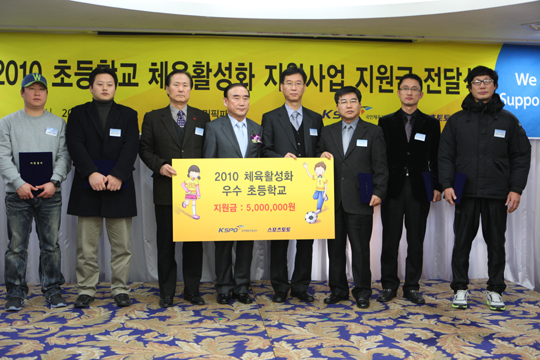 국민체육진흥공단(KSPO/이사장 정정택)과 스포츠토토는 지난 15일 오전 11시 30분 올림픽 파크텔 4층 아테네 홀에서 '2010초등학교 체육활성화 지원금' 전달식을 개최하고 전국 32개 초등학교에 총 1억6000만원의 기금을 전달했다.